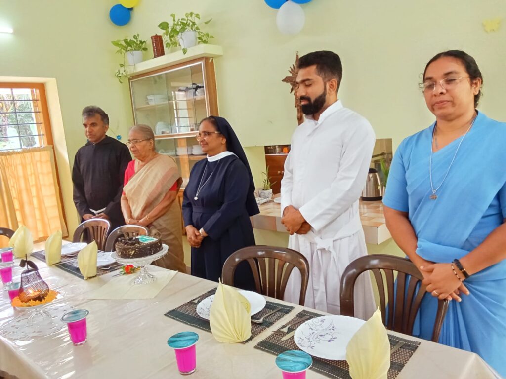 The birthday of Sr. Grace Mary Cherian, the Regional Superior, was celebrated with great solemnity on October 12,2024 through a series of meaningful prayer services and a solemn Eucharistic celebration presided by Fr.Thomas Kanjirakonam and thereafter Fr.Bibin CMI and the mother of Sr.Grace Mary joined us for the festive lunch. To make the occasion even more special, all our communities and Sisters working abroad joined virtually through a Google Meet session to wish Sr. Grace Mary Cherian a happy birthday. This unique initiative allowed the Sisters to connect with each other despite the physical distance, creating a sense of unity and togetherness.