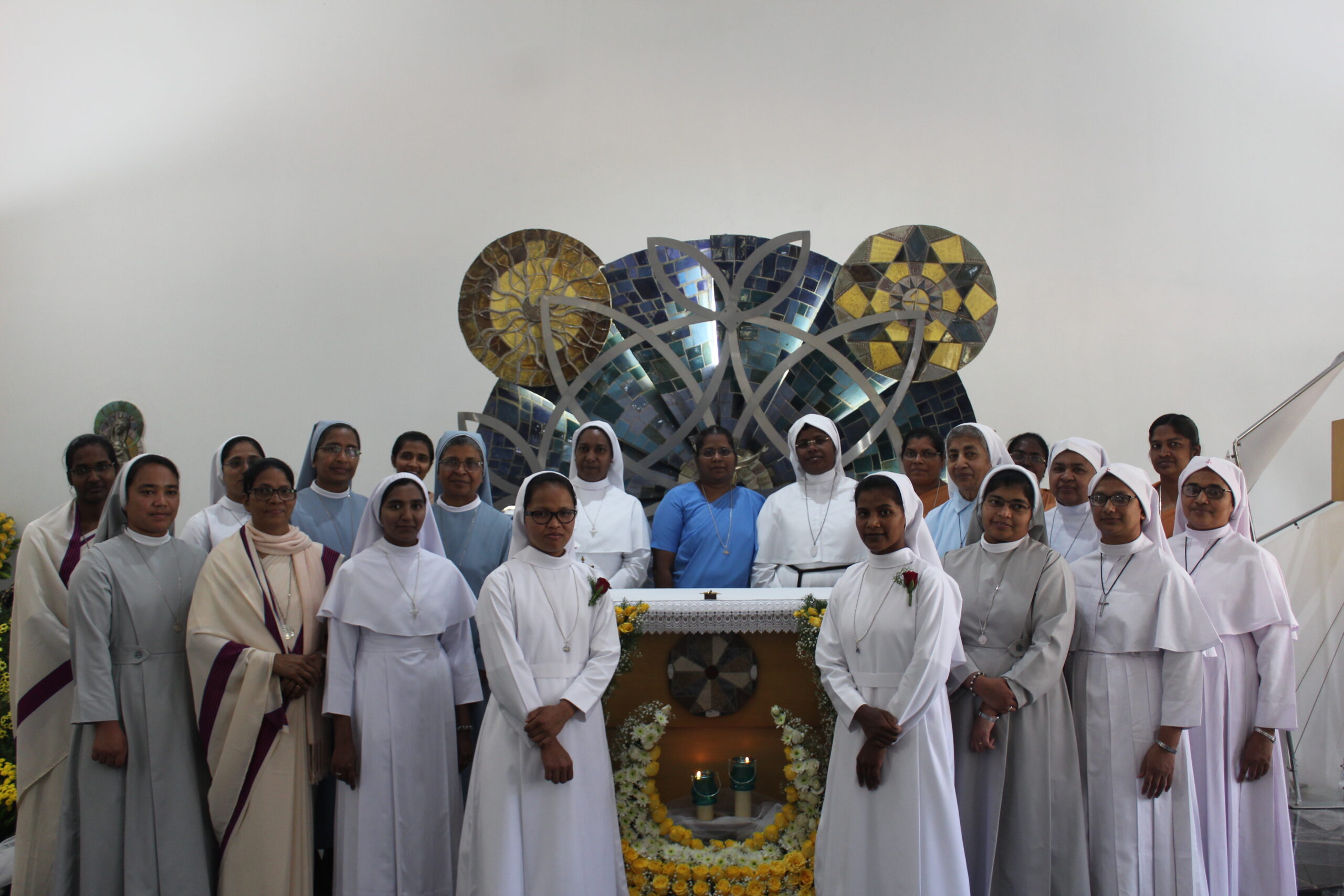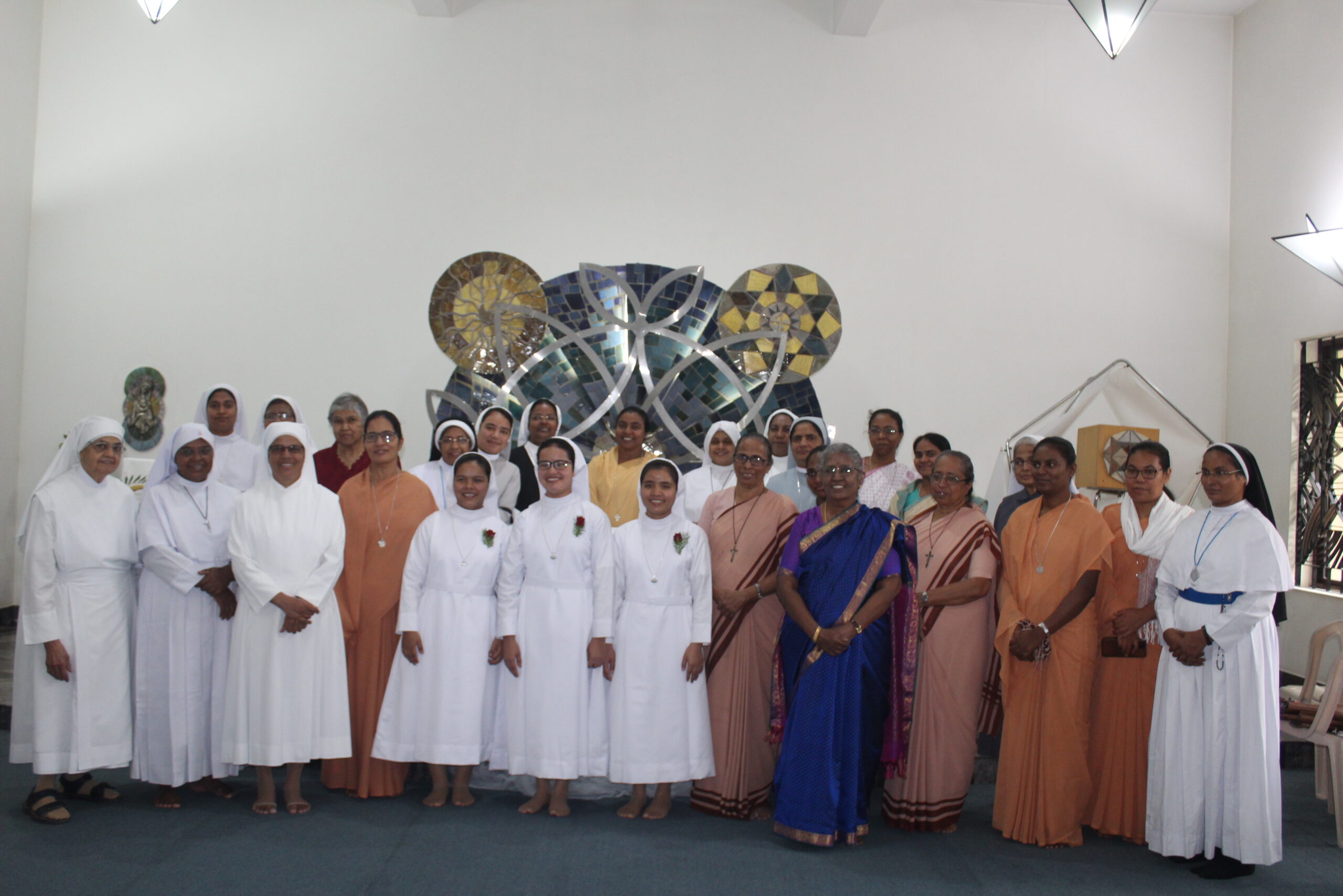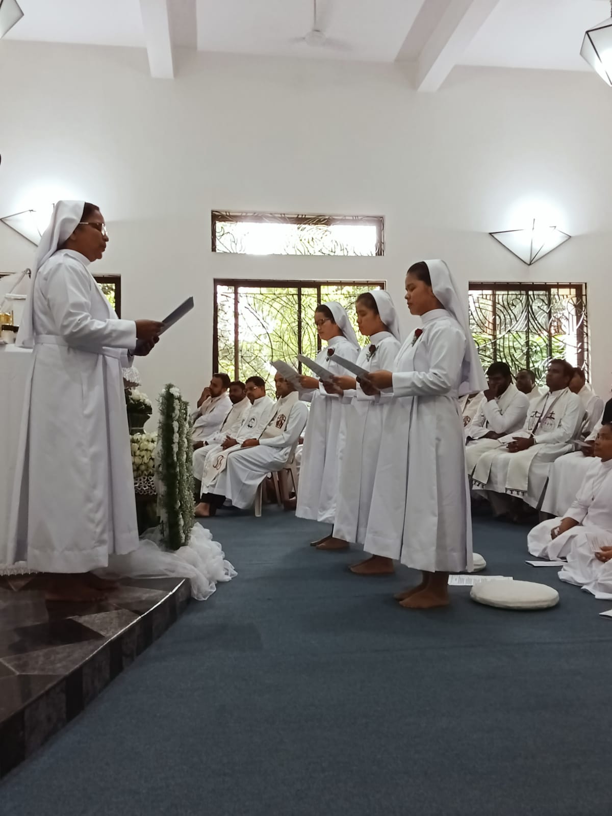On July 21, 2024, novices Dona Mary Rynjah, Pynkmenlang Sohtun, and Risfina Kharwanniang made their first profession at the Sarupya Novitiate in Bangalore. Sr. Grace Mary Cherian, SDS, the Regional Superior, received their vows during the solemn Holy Eucharist. Fr. Sebastian Cheeramvelil SDS, presided over the service, with Fr. Vijoy MSFS, and Fr. Varaprasad, SDS, concelebrating the Mass along with almost 30 priests and many number of religious Sisters from neighboring communities.
