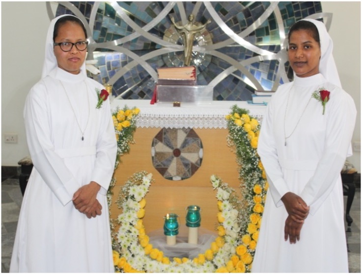 Novices Aishamery K. Wanniang and Luci Pani made their first profession in a solemn celebration held at Sarupya, Bangalore on February 19,2023. Sr. Anthonila Kanaparthi the Regional Superior received the first vows of the Novices during the Holy Eucharist; Rev. Fr. Alexis Aseervatham SDS the Vicarate Superior presided over the celebration and Rev. Fr. Benny Koottanal, the Provincial of MSFS Fathers, and Fr. Philip Kizhakumpurath MSFS were the concelebrants. Congratulations and Prayerful wishes to the newly professed sisters.